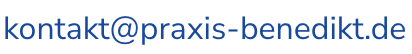 Die Internetseite der Praxis Benedikt enthält aufgrund von gesetzlichen Vorschriften Angaben, die eine schnelle elektronische Kontaktaufnahme zu unserem Unternehmen sowie eine unmittelbare Kommunikation mit uns ermöglichen, was ebenfalls eine allgemeine Adresse der sogenannten elektronischen Post (E-Mail-Adresse) umfasst. Sofern eine betroffene Person per E-Mail oder über ein Kontaktformular den Kontakt mit dem für die Verarbeitung Verantwortlichen aufnimmt, werden die von der betroffenen Person übermittelten personenbezogenen Daten automatisch gespeichert. Solche auf freiwilliger Basis von einer betroffenen Person an den für die Verarbeitung Verantwortlichen übermittelten personenbezogenen Daten werden für Zwecke der Bearbeitung oder der Kontaktaufnahme zur betroffenen Person gespeichert. Es erfolgt keine Weitergabe dieser personenbezogenen Daten an Dritte.